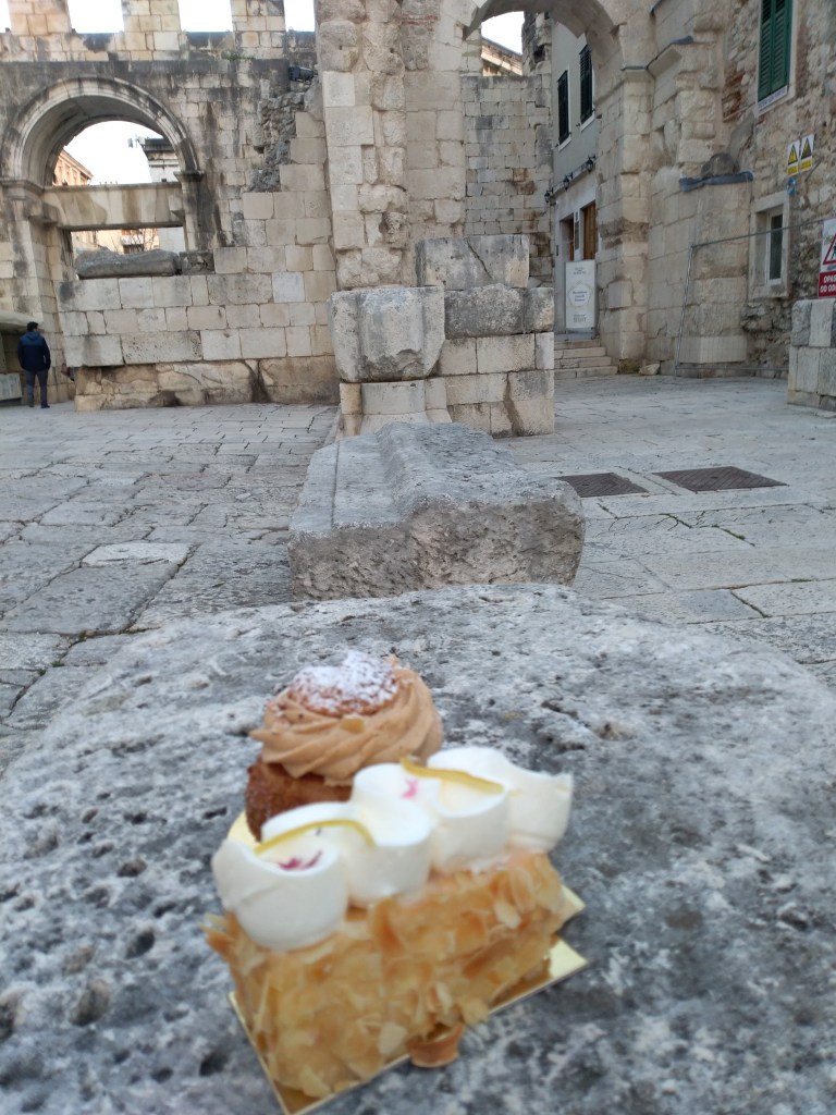 I’ve visited Split a couple of times in the past. But it was always during the summer when it was crowded with the tourists. However, this year I got to experience Split in a completely different way. I spent two weeks in Split at the end of February/beginning of March (2021). It wasn’t a leisure trip. I was there on a work training. I had the privilege of living in an apartment within the Diocletian’s palace, just a few meters from Peristil square. I didn’t have a lot of free time on my hands. Nevertheless, I used wisely my free time and explored the historical city center and took lots of photos. I had some delicious cakes and summery ice-creams too. It was a tough task to choose just 12 photos for this post.