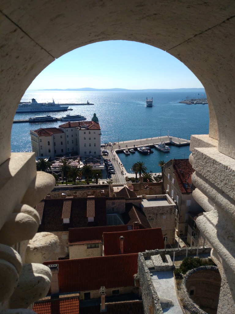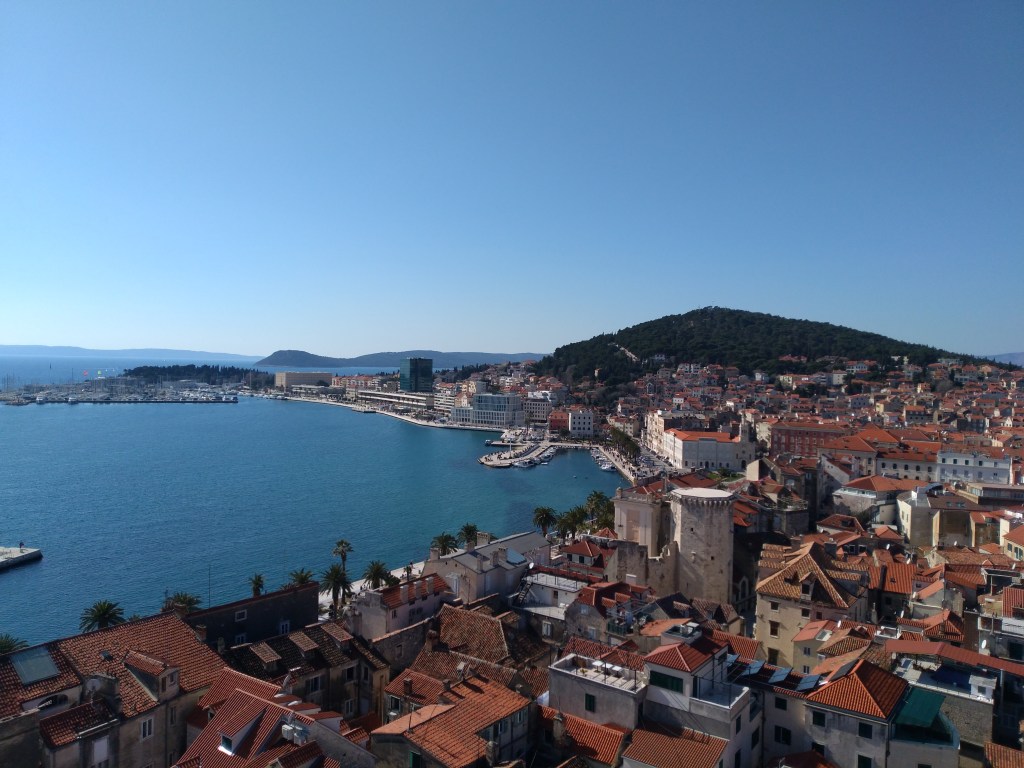 view of Split from the cathedral’s bell tower, a part of the Diocletian’s palace