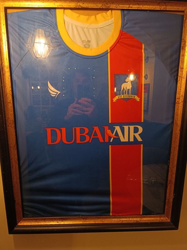 After taking some photos we entered the Prince’s Head aka the Crown & Anchor pub. It was full but after a while a seat was vacated and we found our snugly spot and ordered some drinks. It was fun to see some memorabilia from the TV show such as coasters and Richmond AFC scarf and jersey. I apologize if I’m spoiling the show for you in case you haven’t seen it yet but Richmond football club doesn’t actually exist. It was made up just for the show and the match scenes weren’t filmed in Richmond. The pub was pricey but it was enjoyable to have a drink there even though the real pub scenes were filmed in the studio and not at this location. But the pub’s exterior and the streets around it are featured heavily in the show.
